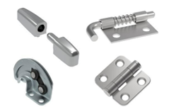 - A wide range of hinging solutions in external, concealed or fully integrated design to control motion and enhance functionality. They are also available in stainless steel with optional covers to prevent injuries due to the constant motion of the vehicle and increase hygiene.